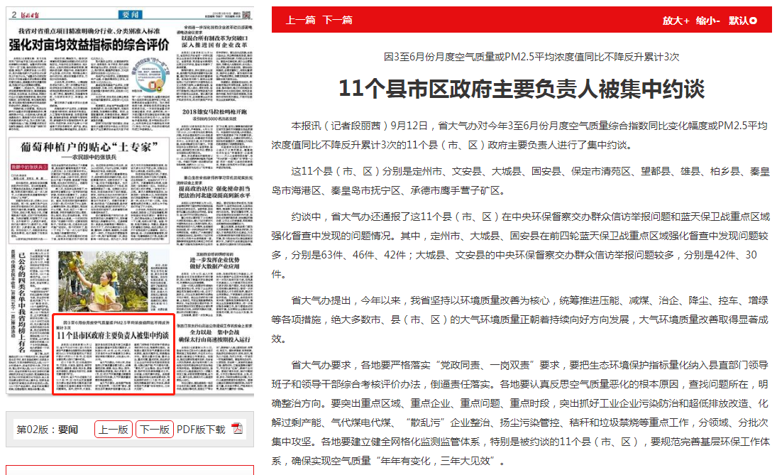 河北日报:11个县市区政府主要负责人被集中约谈