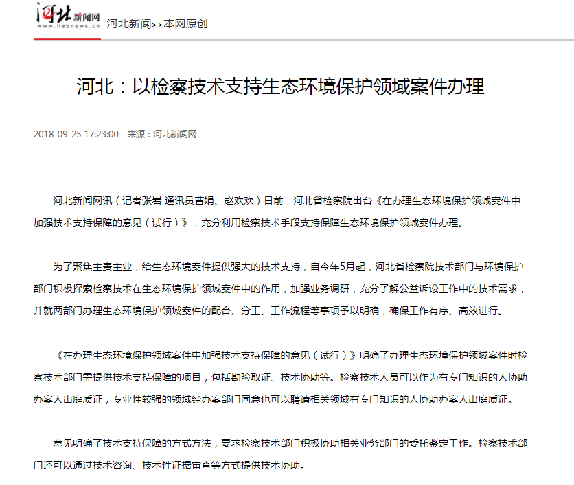 河北新闻网:河北以检察技术支持生态环境保护领域案件办理