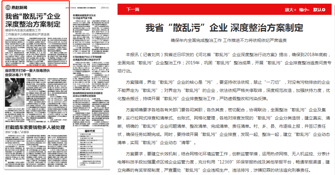 燕赵都市报:我省“散乱污”企业 深度整治方案制定