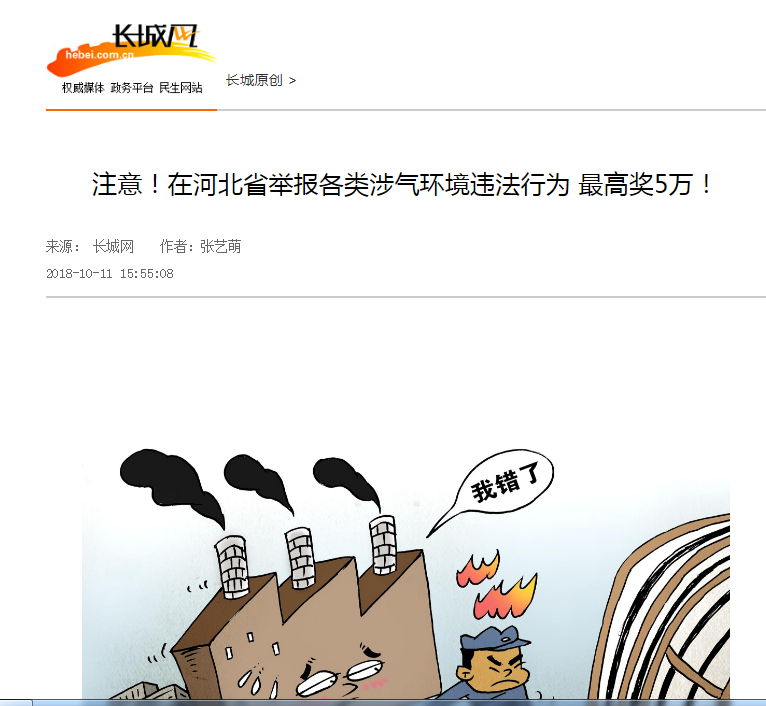长城网:注意!在河北省举报各类涉气环境违法行为 最高奖5万!