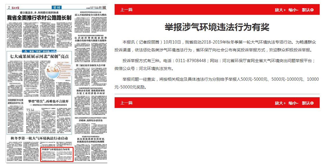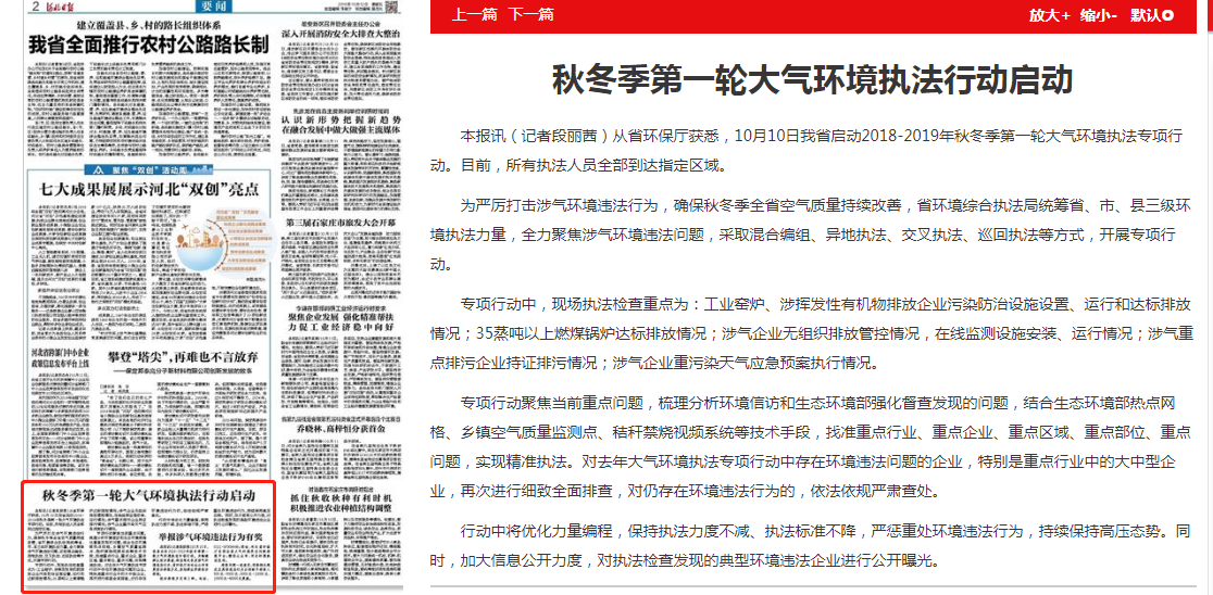 河北日报:秋冬季第一轮大气环境执法行动启动