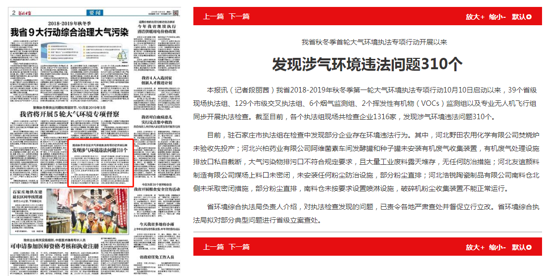 本报讯(记者段丽茜)我省2018-2019年秋冬季第一轮大气环境执法专项行动10月10日启动以来,39个省级现场执法组、129个市级交叉执法组、6个烟气监测组、2个挥发性有机物(VOCs)监测组以及专业无人机飞行组同步开展执法检查。截至目前,各个执法组现场共检查企业1316家,发现涉气环境违法问题310个。