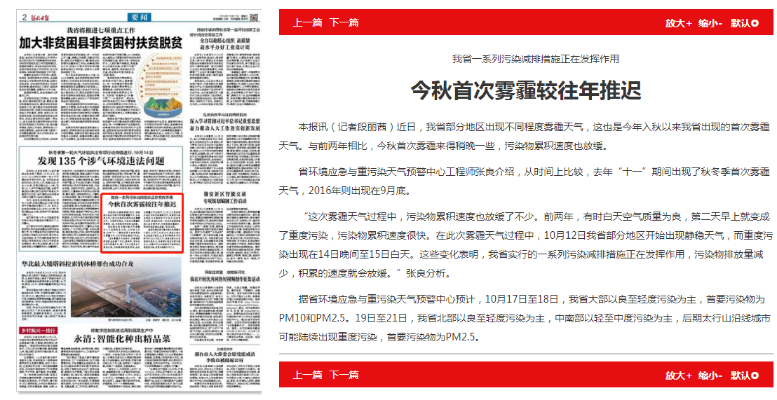 河北日报:我省一系列污染减排措施正在发挥作用 今秋首次雾霾较往年推迟