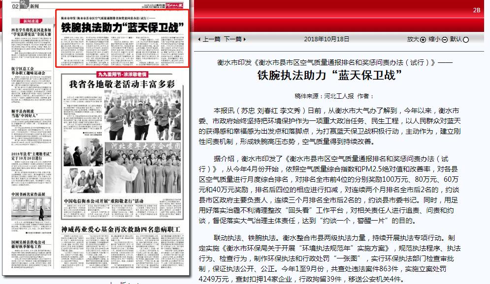河北工人报:铁腕执法助力“蓝天保卫战”