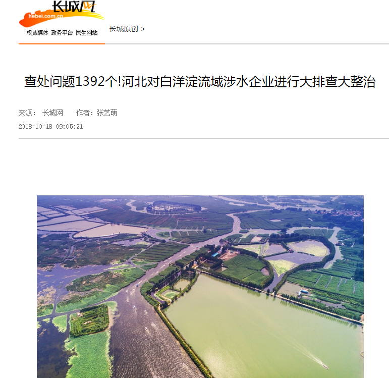 长城网:查处问题1392个!河北对白洋淀流域涉水企业进行大排查大整治