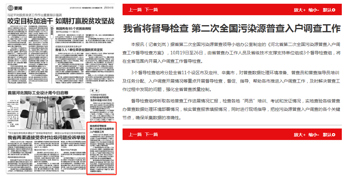 燕赵都市报:我省将督导检查 第二次全国污染源普查入户调查工作