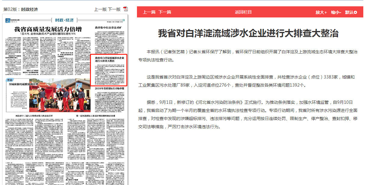 河北经济日报:我省对白洋淀流域涉水企业进行大排查大整治