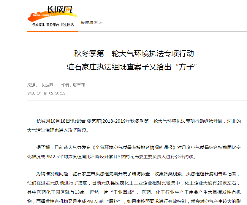长城网:秋冬季第一轮大气环境执法专项行动 驻石家庄执法组既查案子又给出“方子”