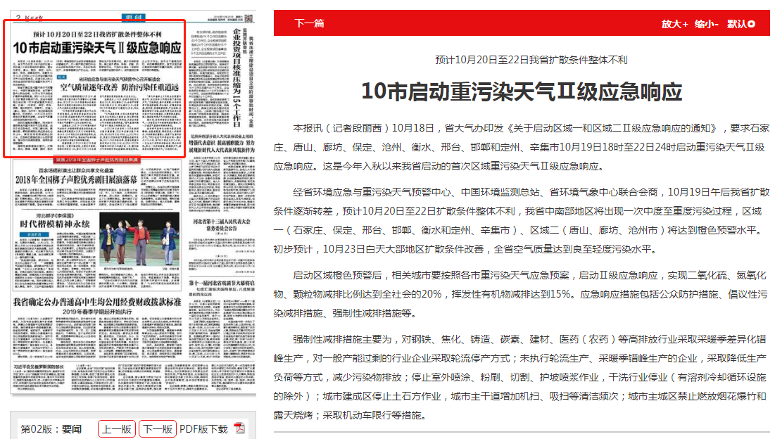 河北日报;10市启动重污染天气Ⅱ级应急响应