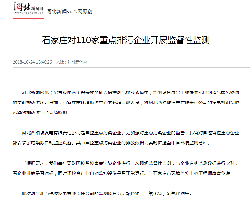 河北新闻网:石家庄对110家重点排污企业开展监督性监测