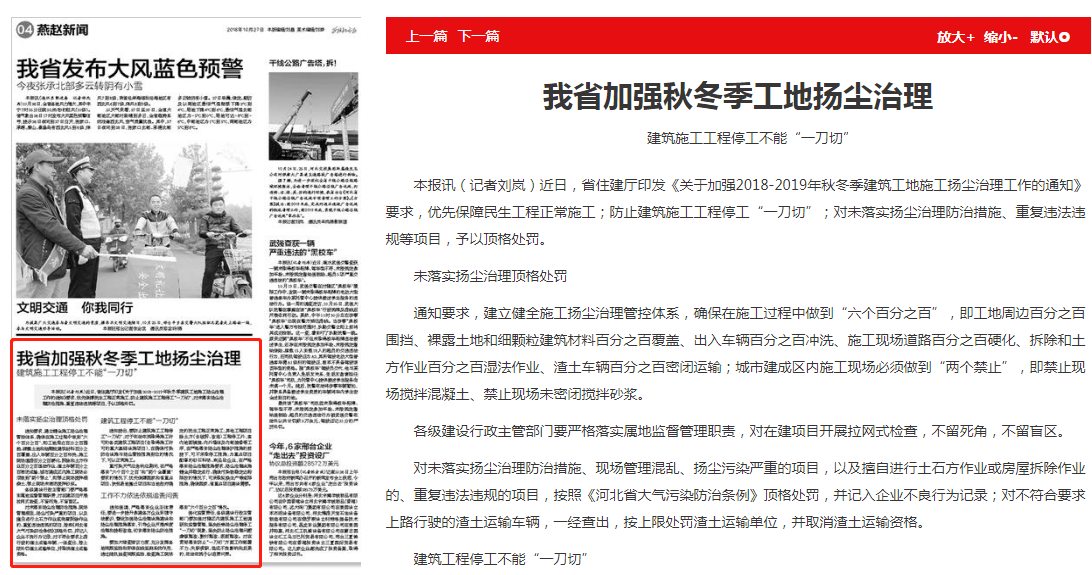 燕赵都市报:我省加强秋冬季工地扬尘治理