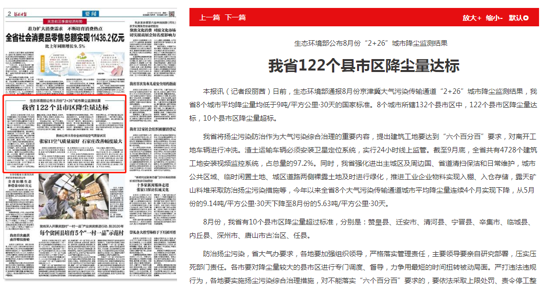 河北日报:我省122个县市区降尘量达标
