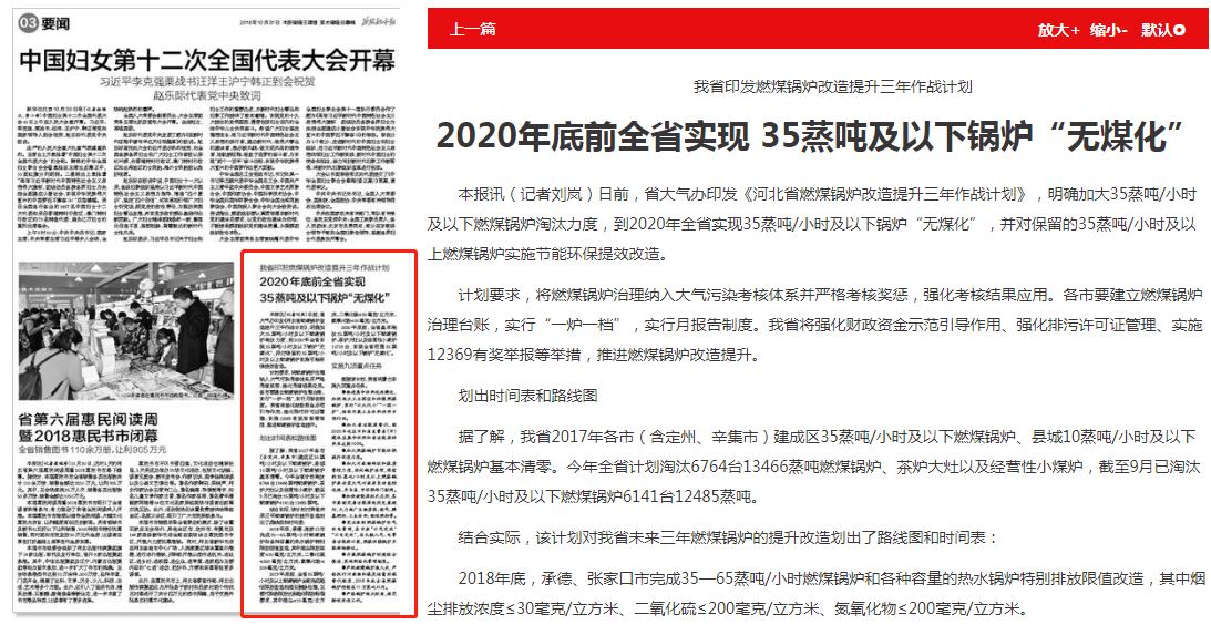 燕赵都市报:2020年底前全省实现 35蒸吨及以下锅炉“无煤化”