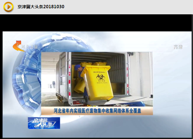 河北卫视《京津冀大头条》(晚间新闻):河北省年内实现医疗废物集中收集网络体系全覆盖