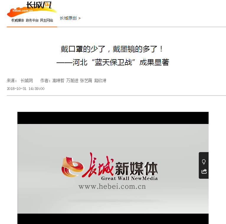 长城网:戴口罩的少了,戴墨镜的多了!——河北“蓝天保卫战”成果显著