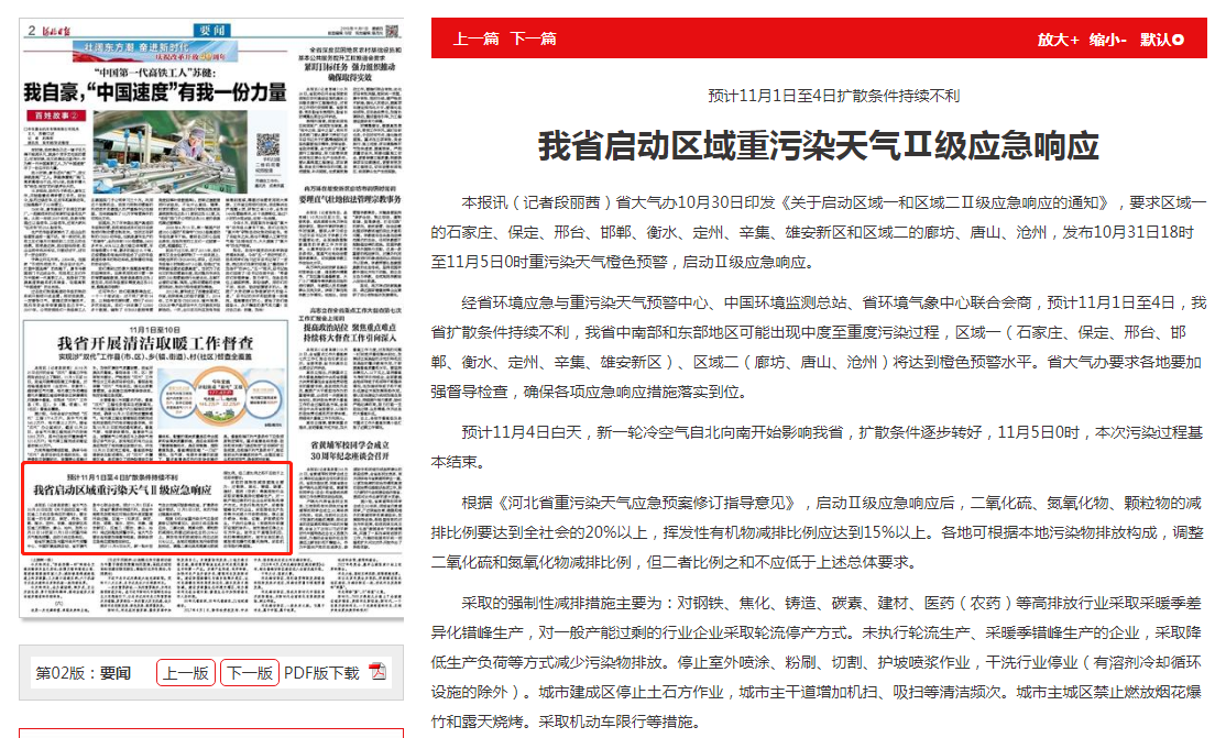 河北日报:我省启动区域重污染天气Ⅱ级应急响应