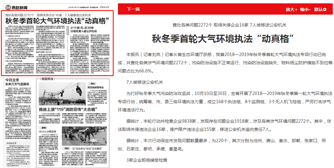 燕赵都市报:秋冬季首轮大气环境执法“动真格”
