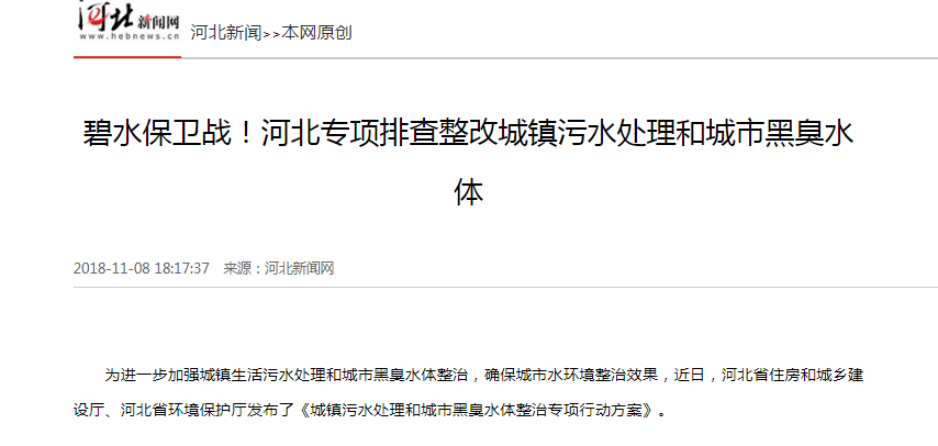 河北新闻网:碧水保卫战!河北专项排查整改城镇污水处理和城市黑臭水体