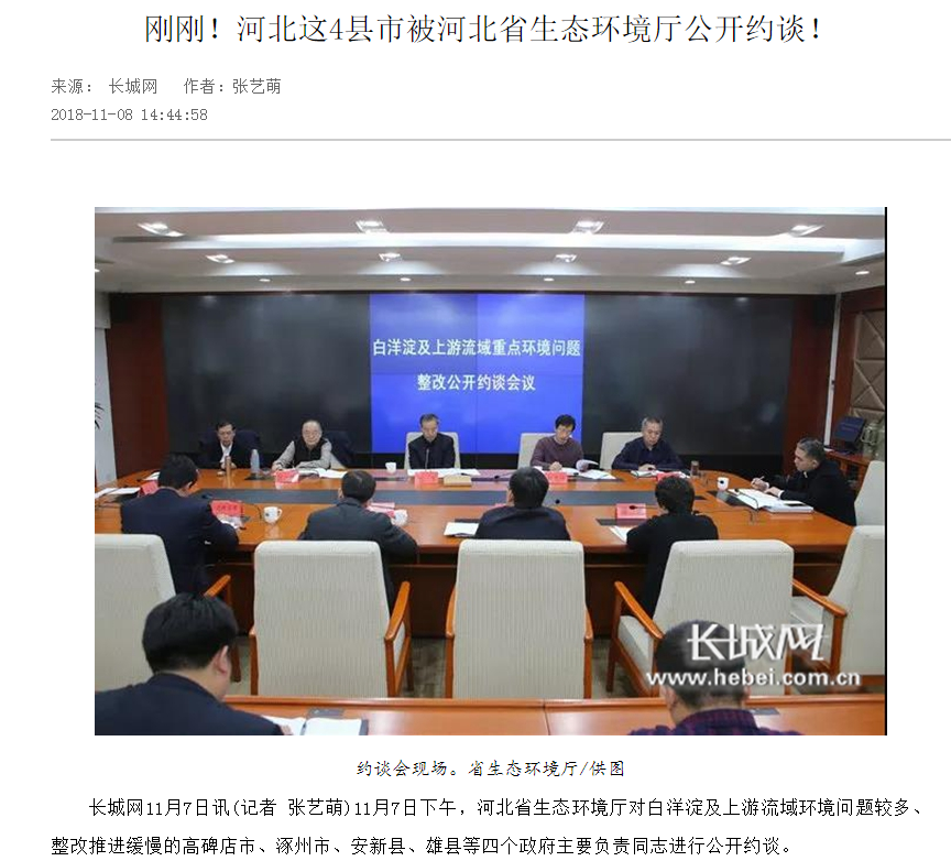 长城网11月7日讯(记者 张艺萌)11月7日下午,杏彩(中国)官方网站 对白洋淀及上游流域环境问题较多、整改推进缓慢的高碑店市、涿州市、安新县、雄县等四个政府主要负责同志进行公开约谈。