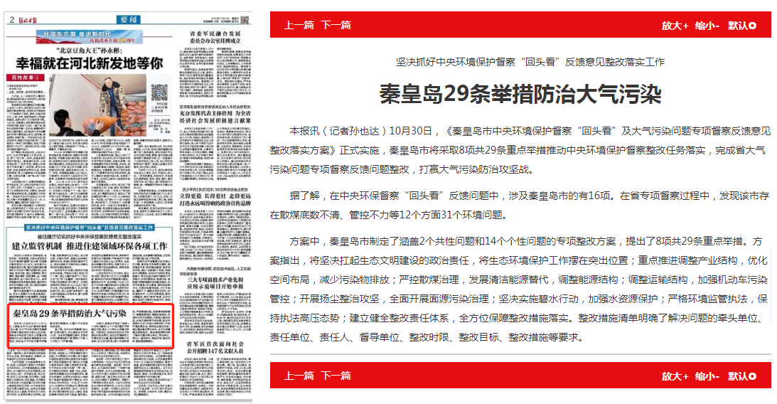 据了解,在中央环保督察“回头看”反馈问题中,涉及秦皇岛市的有16项。在省专项督察过程中,发现该市存在散煤底数不清、管控不力等12个方面31个环境问题。