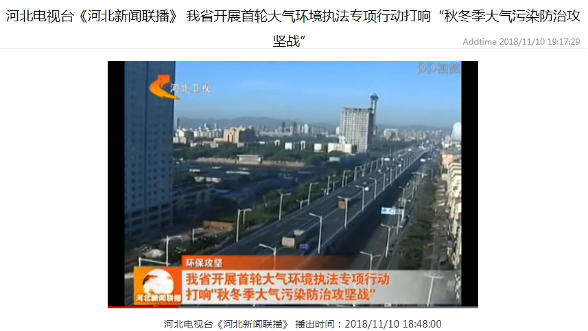 河北卫视《河北新闻联播》:我省开展首轮大气环境执法专项行动打响“秋冬季大气污染防治攻坚战”