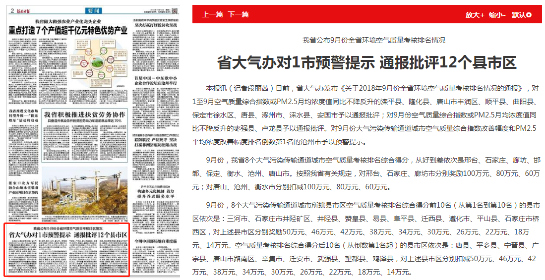河北日报:省大气办对1市预警提示 通报批评12个县市区