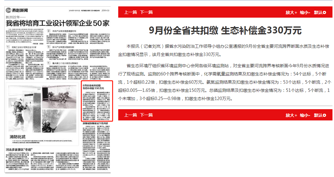 燕赵都市报:9月份全省共扣缴 生态补偿金330万元