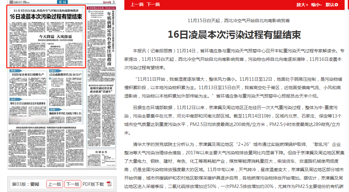 河北日报:16日凌晨本次污染过程有望结束