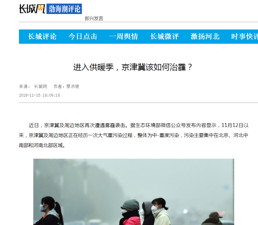 长城网:进入供暖季,京津冀该如何治霾?