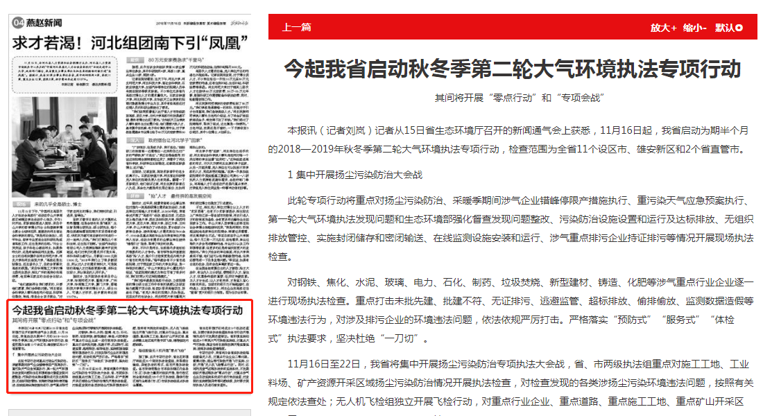 燕赵都市报:今起我省启动秋冬季第二轮大气环境执法专项行动
