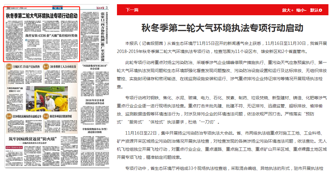 河北日报:秋冬季第二轮大气环境执法专项行动启动