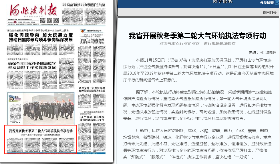 河北法制报:我省开展秋冬季第二轮大气环境执法专项行动