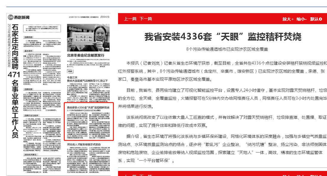 燕赵都市报:我省安装4336套“天眼”监控秸秆焚烧