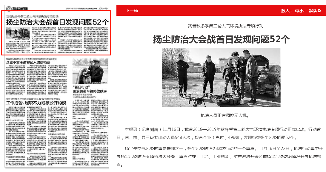 燕赵都市报:我省秋冬季第二轮大气环境执法专项行动 扬尘防治大会战首日发现问题52个