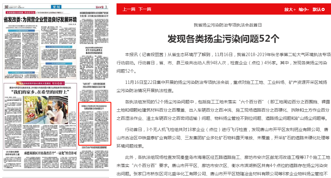 河北日报:我省扬尘污染防治专项执法会战首日 发现各类扬尘污染问题52个