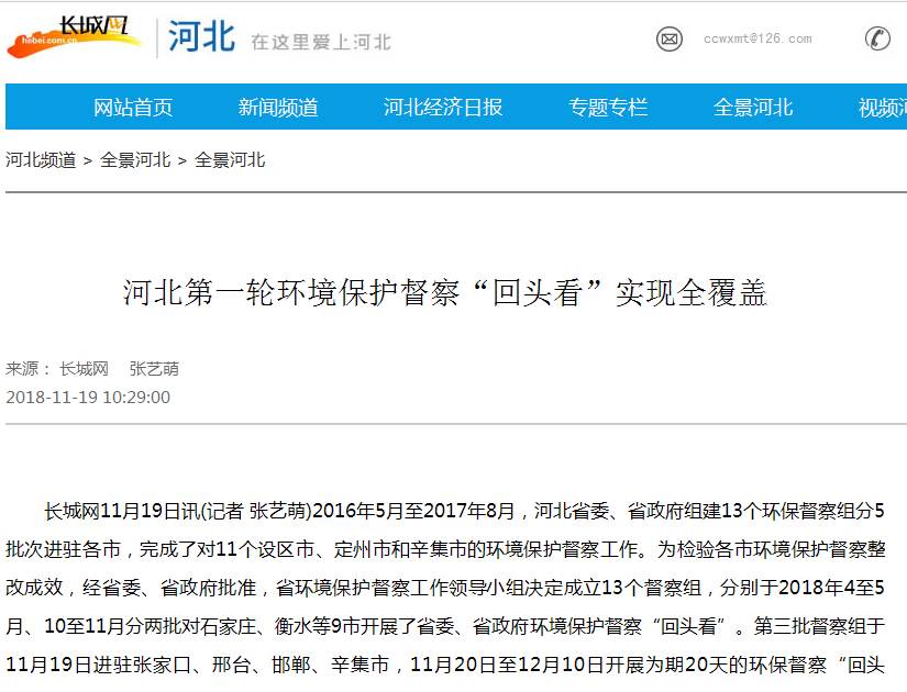 长城网:河北第一轮环境保护督察“回头看”实现全覆盖