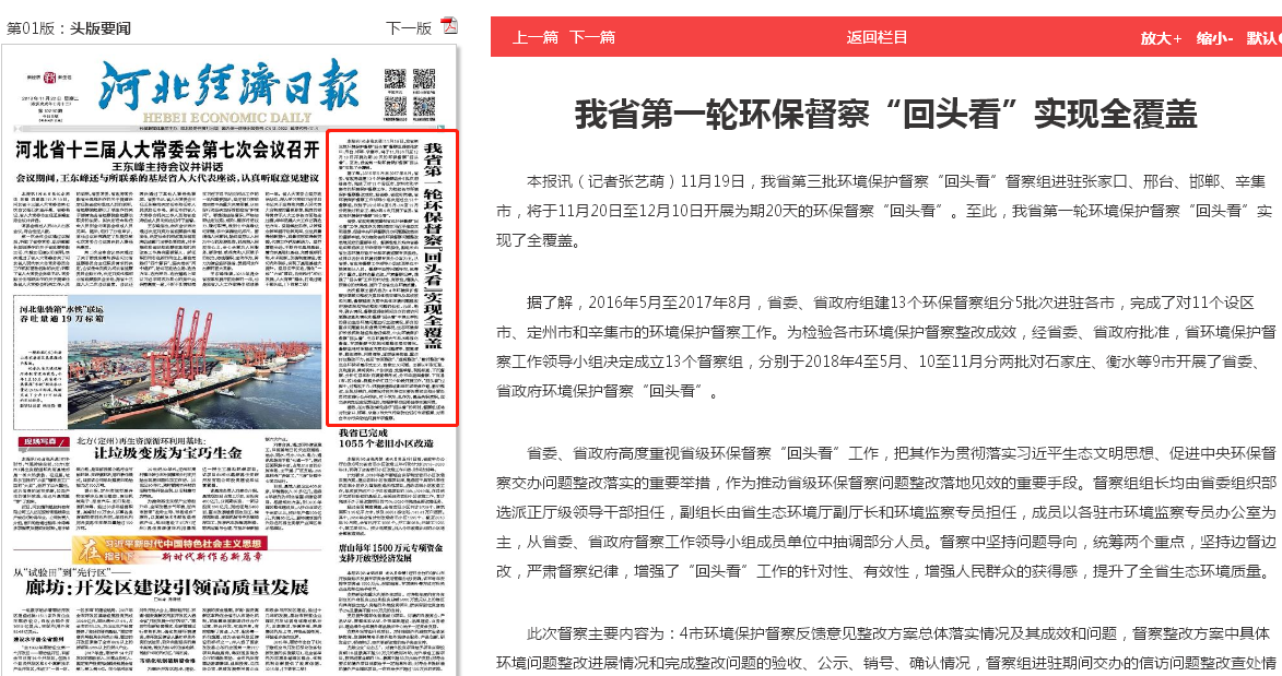 河北经济日报:我省第一轮环保督察“回头看”实现全覆盖