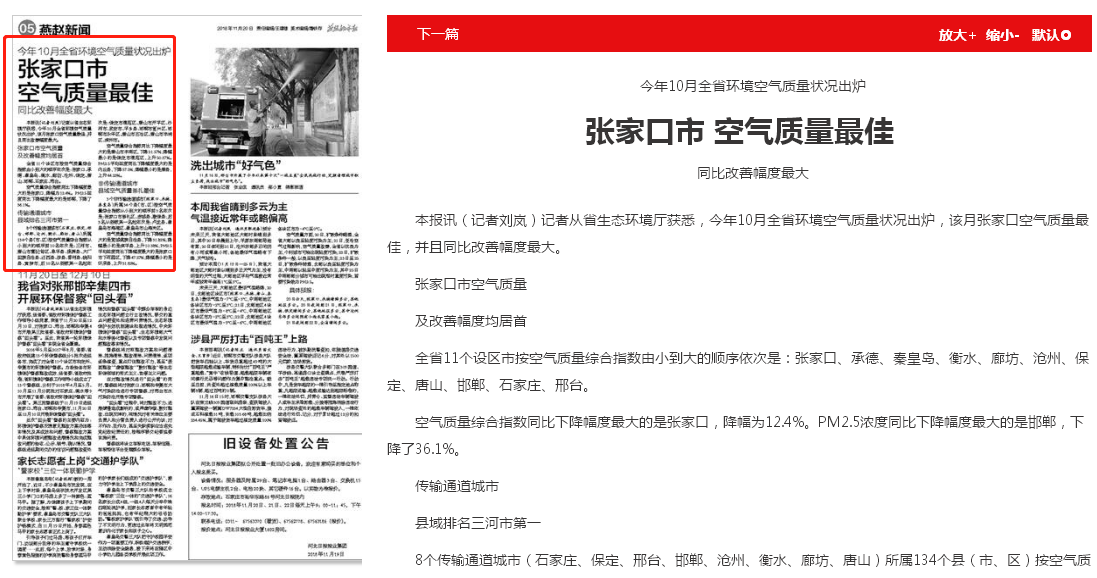 燕赵都市报:今年10月全省环境空气质量状况出炉 张家口市 空气质量最佳
