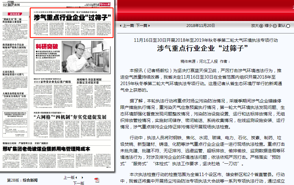 11月16日至30日开展2018年至2019年秋冬季第二轮大气环境执法专项行动