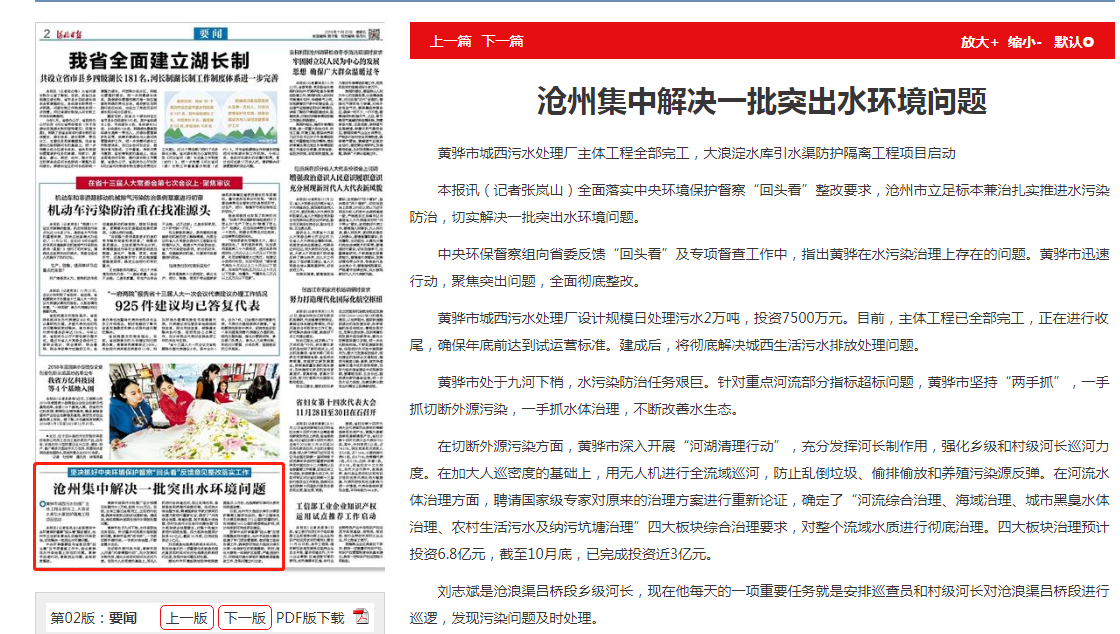 河北日报:沧州集中解决一批突出水环境问题