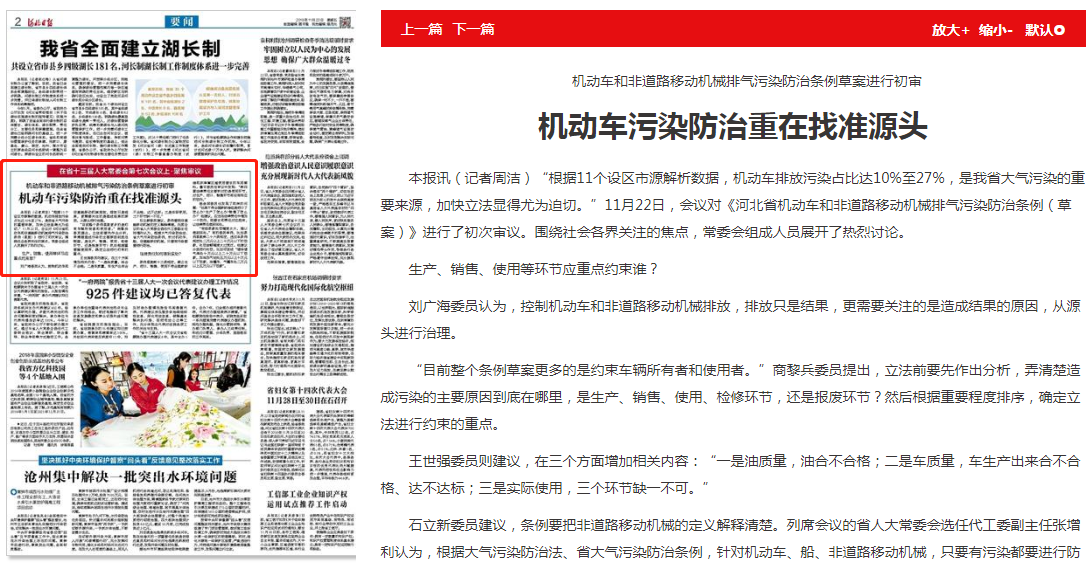 本报讯(记者周洁)“根据11个设区市源解析数据,机动车排放污染占比达10%至27%,是我省大气污染的重要来源,加快立法显得尤为迫切。”11月22日,会议对《河北省机动车和非道路移动机械排气污染防治条例(草案)》进行了初次审议。围绕社会各界关注的焦点,常委会组成人员展开了热烈讨论。