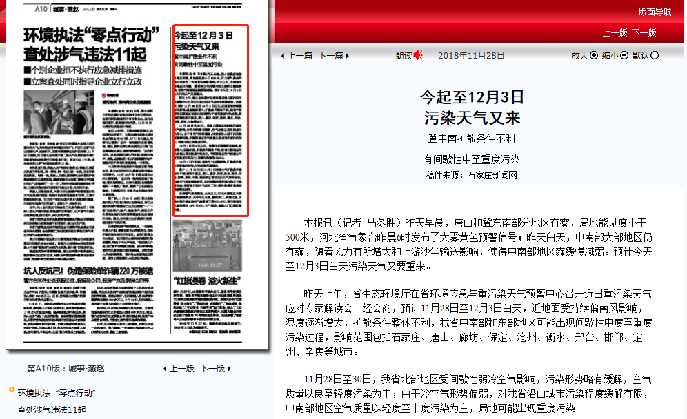 昨天上午,杏彩(中国)官方网站 在省环境应急与重污染天气预警中心召开近日重污染天气应对专家解读会。经会商,预计11月28日至12月3日白天,近地面受持续偏南风影响,湿度逐渐增大,扩散条件整体不利,我省中南部和东部地区可能出现间歇性中度至重度污染过程,影响范围包括石家庄、唐山、廊坊、保定、沧州、衡水、邢台、邯郸、定州、辛集等城市。