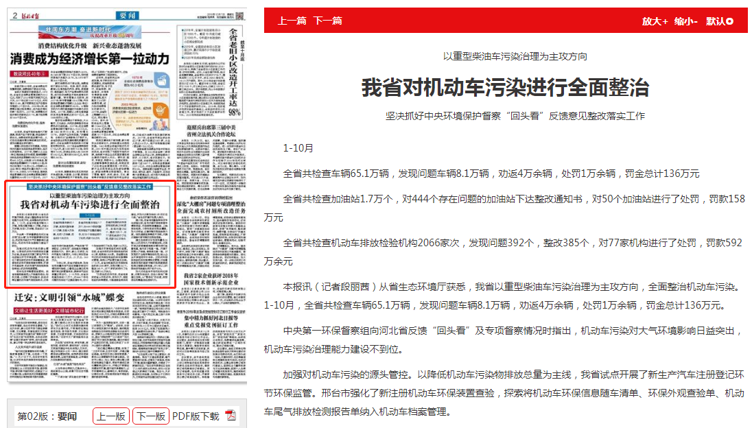 河北日报: 以重型柴油车污染治理为主攻方向 我省对机动车污染进行全面整治