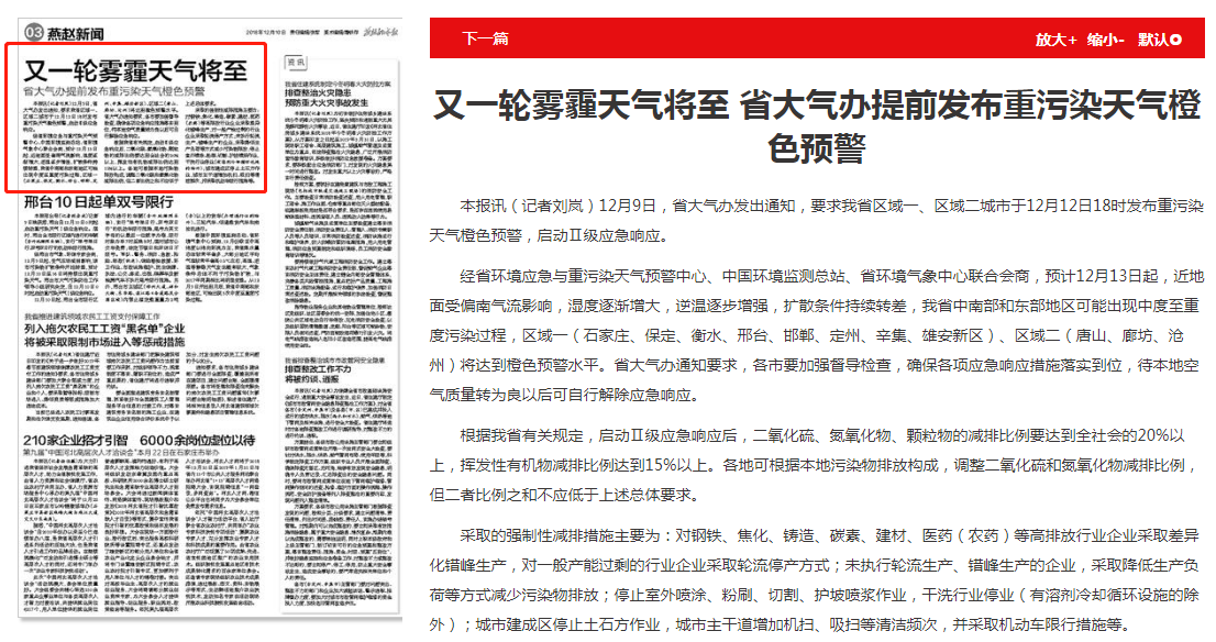 燕赵都市报:又一轮雾霾天气将至