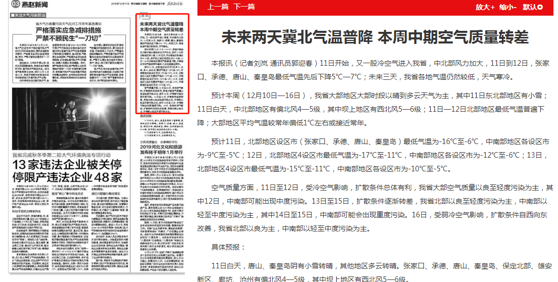 燕赵都市报:未来两天冀北气温普降 本周中期空气质量转差