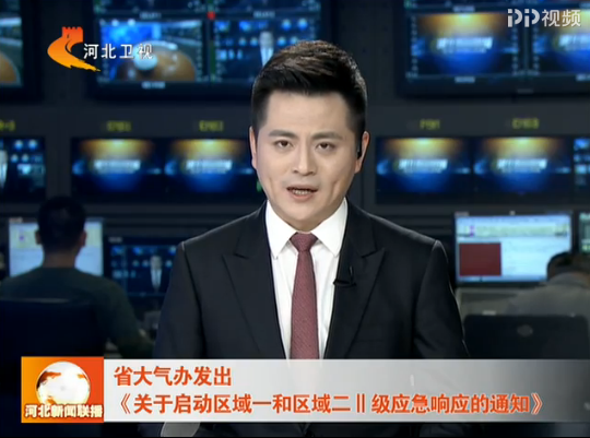 河北卫视《河北新闻联播》:省大气办发出《关于启动区域一和区域二II级应急响应的通知》