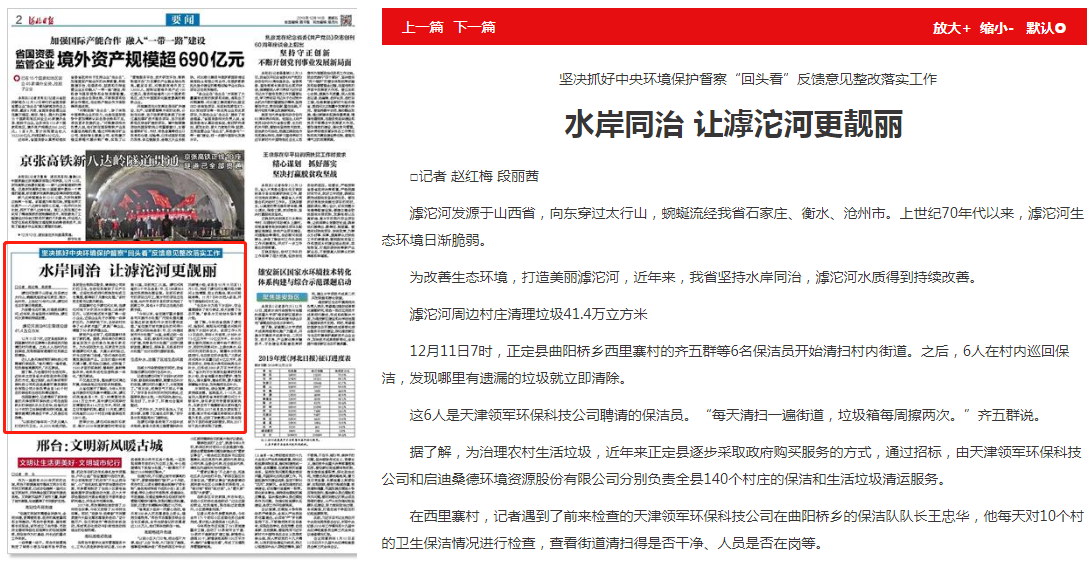 河北日报:坚决抓好中央环境保护督察“回头看”反馈意见整改落实工作 水岸同治 让滹沱河更靓丽