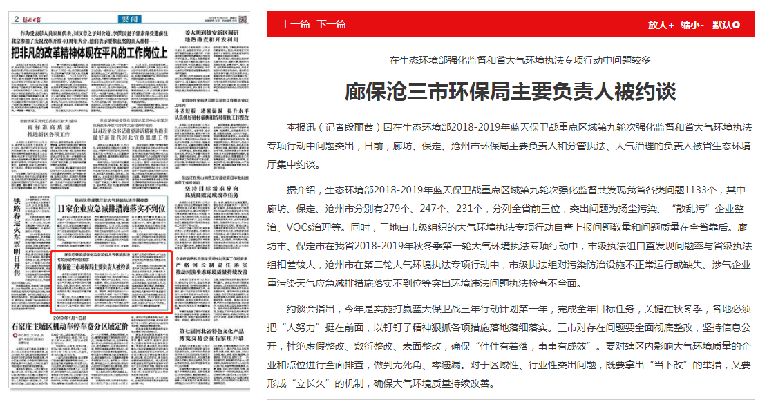 河北日报:廊保沧三市环保局主要负责人被约谈