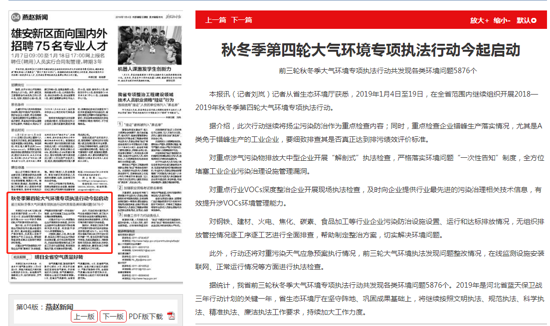 燕赵都市报:秋冬季第四轮大气环境专项执法行动今起启动