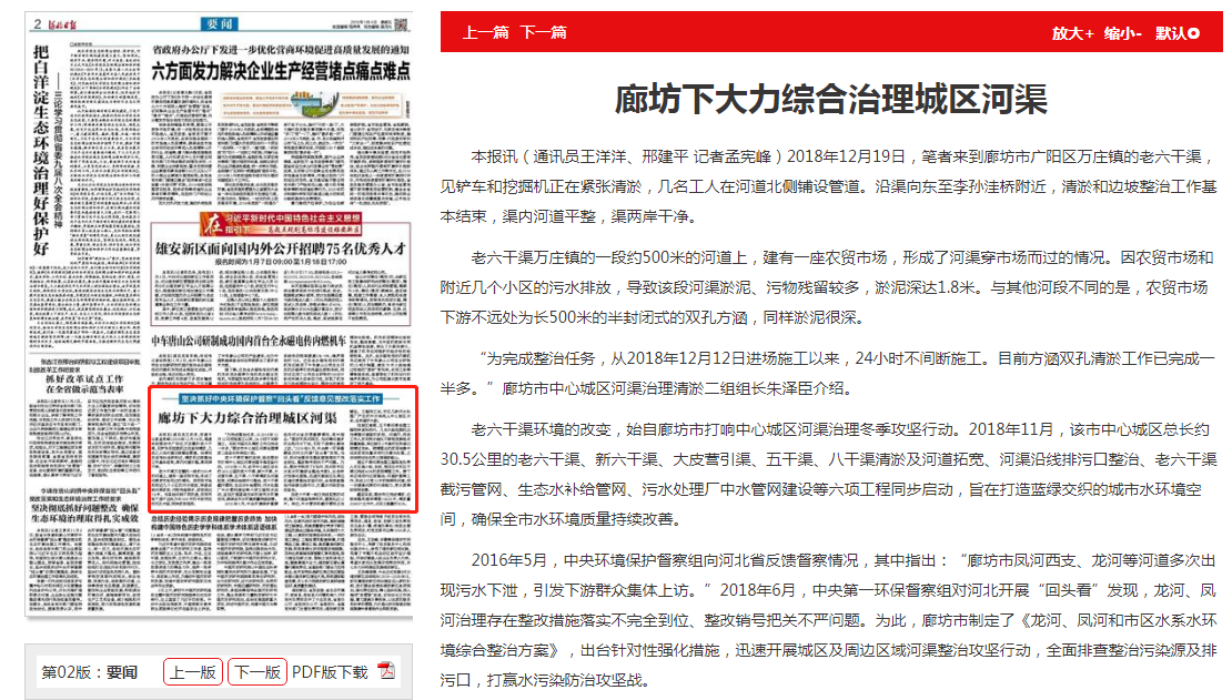 河北日报:坚决抓好中央环保督察“回头看”反馈意见整改落实工作 廊坊下大力综合治理城区河渠
